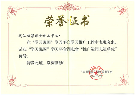 日前,省委宣传部、省委讲师团联合“学习强国”湖北学习平台组织评选湖北省推广运用先进单位,武汉湖北粮网经层层推选,被评为“推广运用先进单位”,成为省直单位22个先进单位之一。